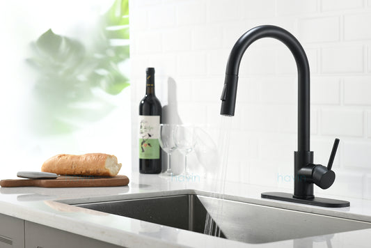 Havin HV601B Brass Material,Kitchen Sink Faucet with Pull Down Sprayer,Kitchen Faucet with Pull Out Sprayer (Matte Black)