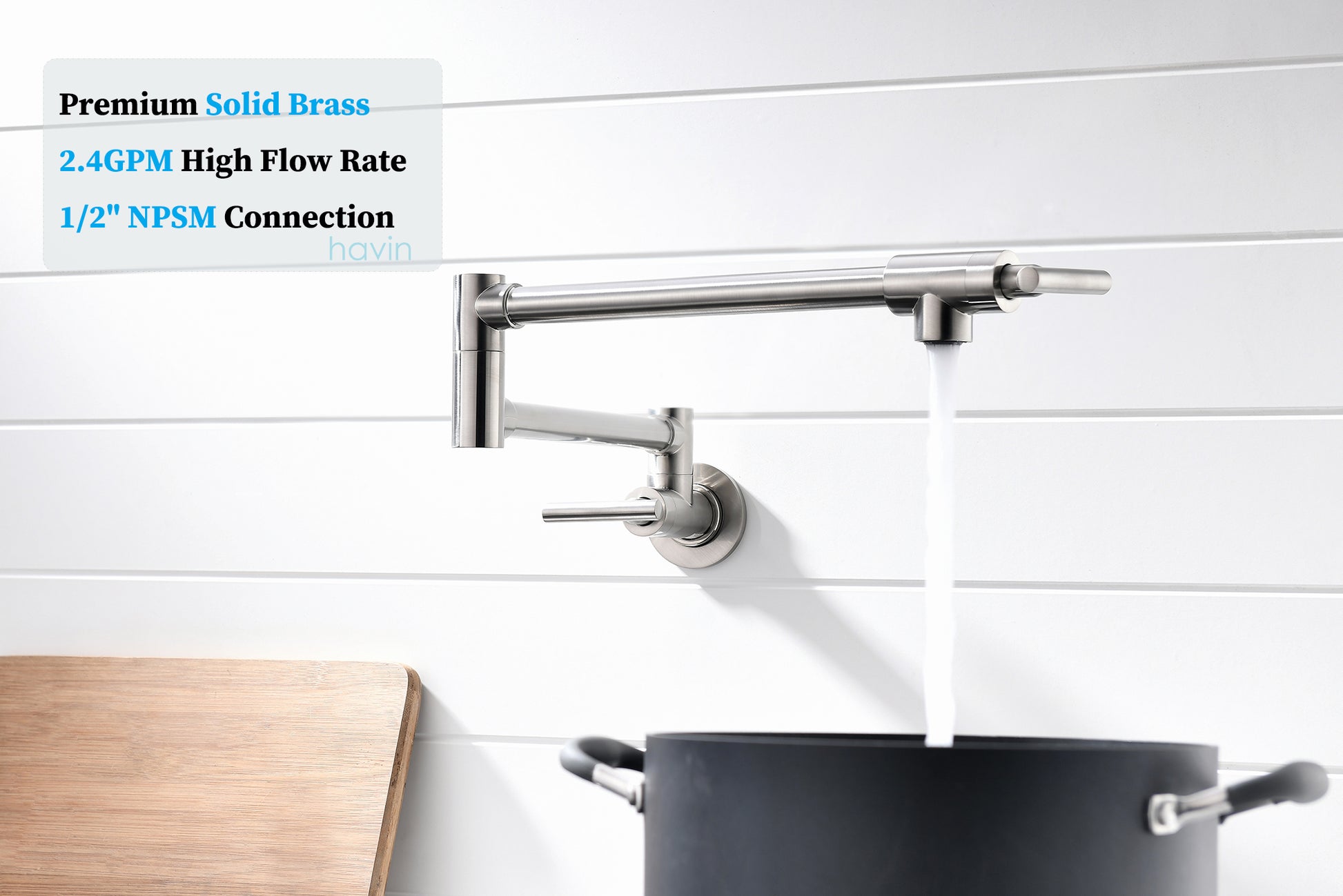 Havin Pot Filler,Pot Filler Faucet Wall Mount,Brass Material,with Double Joint Swing Arms (Style A Brushed Nickel A203, Brushed Nickel)