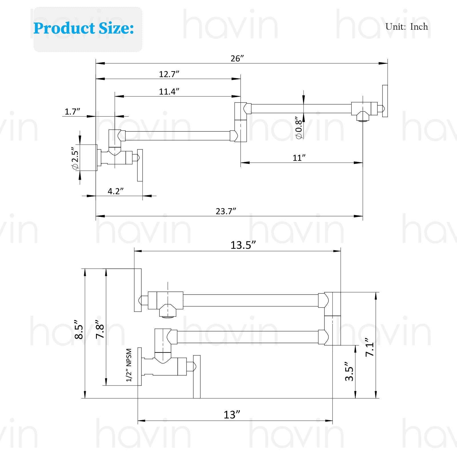 • ►Product is 360° Rotatable:26 inch Dual Jointed Swing Spout,Use for Only Cold Water or Only Hot Water,One Hole Inlet Wall Mount.