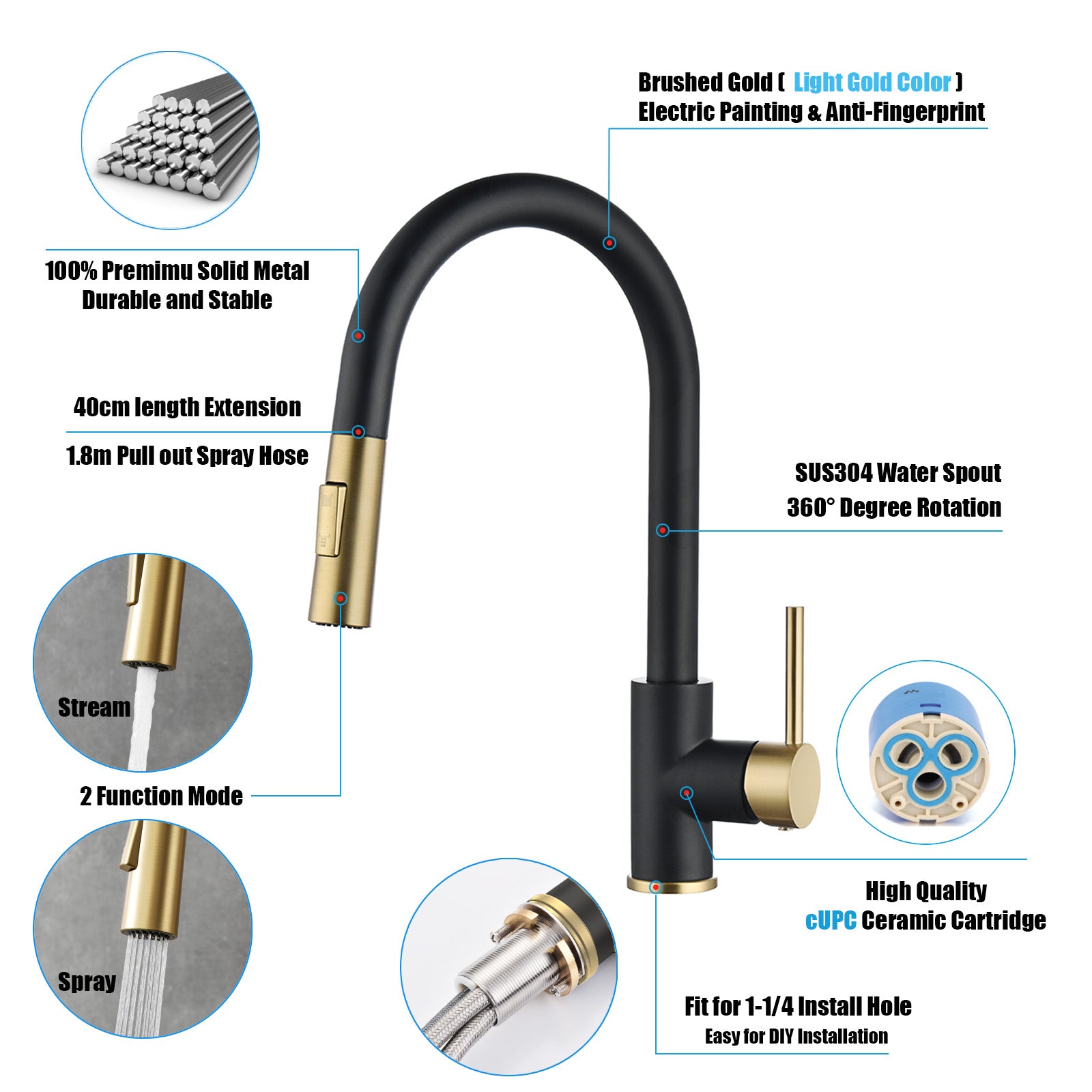 - ✔✔✔Stylish and Durable: This kitchen faucet fits for 1 hole kitchen sink without deck plate,it is stylish and sleek look,use cUPC ceramic cartridge to make sure can have more than 600,000 times open and close operation.