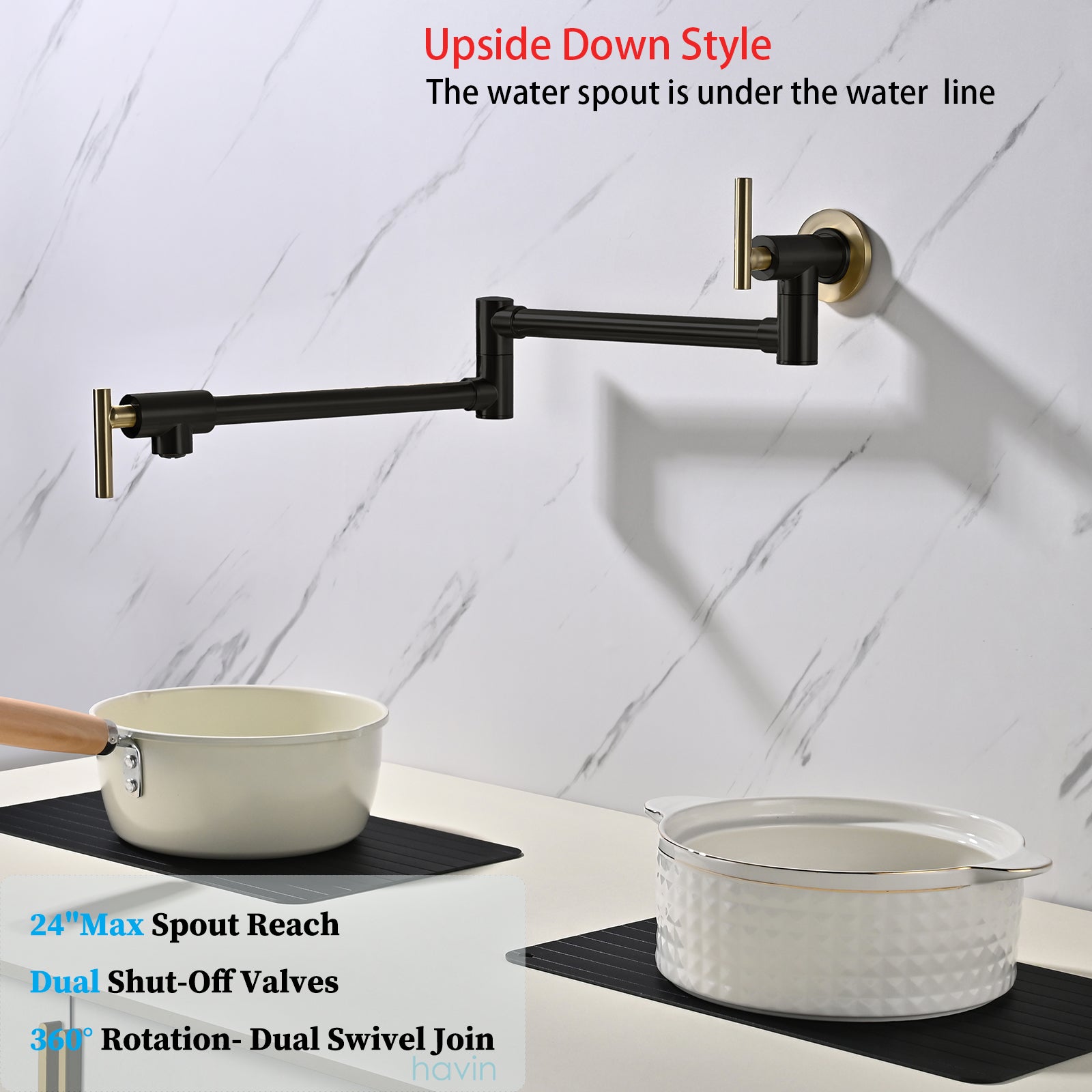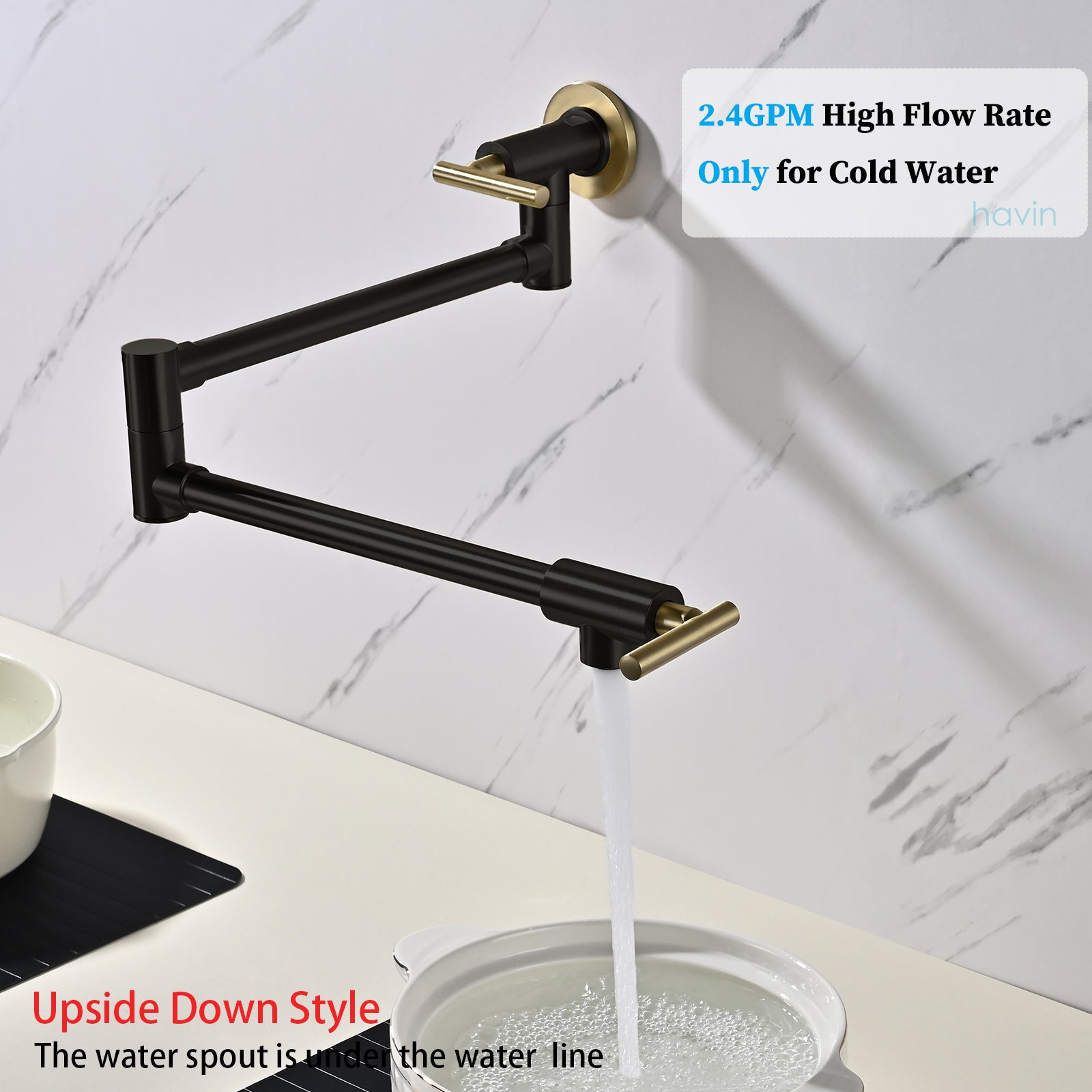 Havin A202 Pot filler faucet wall mount, Stainless Steel Material, Upside Down Style, Brushed Gold and Black (New Structure))