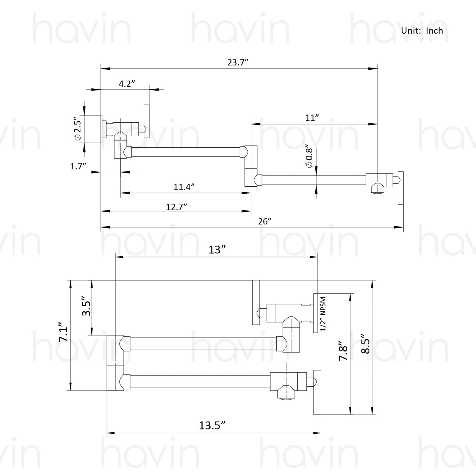 Havin A202 Pot filler faucet wall mount, Upside Down Style, Brushed Gold